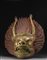 Testa di divinità in bronzo dorato, con lunghe corna, il volto...