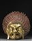 Testa di divinità in bronzo dorato, il volto dall'espressione feroce, una...