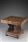 Tavolo quadrato riccamente intarsiato in osso con piano decorato al centro...