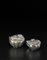 Coppia di scatole in argento lavorate a sbalzo e cesellate, con decorazione...