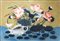 Verre-peint raffigurante una carpa fra loti, guizzante fuori dall'acqua, su...