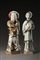 Due statuine in grès smaltato, decoro policromo Una raffigurante un uomo con barba lunga e cappello, l'altra rappresentante una figura femminile con lungo abito (difetti e mancanze) Two ceramic figurines decorated in various colours One, a bearded old man wearing a hat, the other a lady wearing long robes (minor flaws and losses) (la più alta/the tallest cm 18,5)