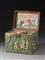 Scatola per il tè in legno rivestito di seta e decorato con figure policrome...