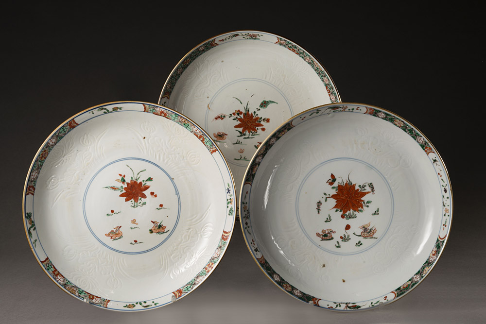 Lotto 267 | Tre piatti di porcellana Famiglia Verde con decorazione centrale di anatre...