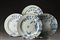 Quattro piatti in porcellana bianca e blu decorati con anatre e terrazza con...