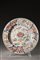 Piatto in porcellana famiglia rosa su fondo bianco e blu, riccamente decorato...