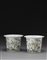 Coppia di cachepot in porcellana di forma cilindrica decorate in famiglia...