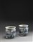 Coppia di grandi cachepot in porcellana bianca e blu, di forma cilindrica dal...
