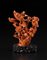 Scultura in corallo raffigurante tre fenici dalla lunga coda su rocce ornamentali e rami di peonia in fiore, dettagli del piumaggio e dei petali finemente intagliati, con base in legno intagliato (piccole mancanze specialmente alle estremità) Cina, inizio sec. XX A coral group carved and pierced with three long-tailed phoenix perched on flowering peony branches beside rocks, fine details of the plumage and the petals (very minor losses predominantly to the extremities) China, early 20th century (h cm 15; gr 234,2)