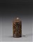 Piccolo contenitore in legno intagliato e traforato con varie figure tra alberi di pino Cina, XX sec. A small carved and pierced wood box carved and pierced with figures amongst pine trees China, 20th century (cm 8x4)