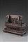 Piccolo supporto per paraventi da tavolo in legno scuro intagliato, composto da due livelli intagliati e traforati con motivi geometrici (difetti e mancanze) Cina, XIX/XX secolo A small dark wood stand for a table screen, composed by two tiers each carved and pierced with geometric decoration (defects and losses) China, 19t/20th century (cm 13x16x7)