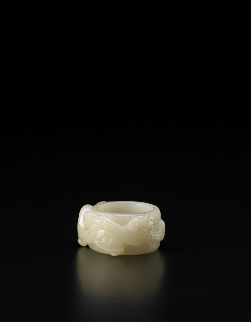Anello d'arciere in giada color celadon decorato con chilong sul bordo...