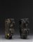 Coppia di fregi in legno intagliato e dorato raffiguranti due leoni buddhisti...