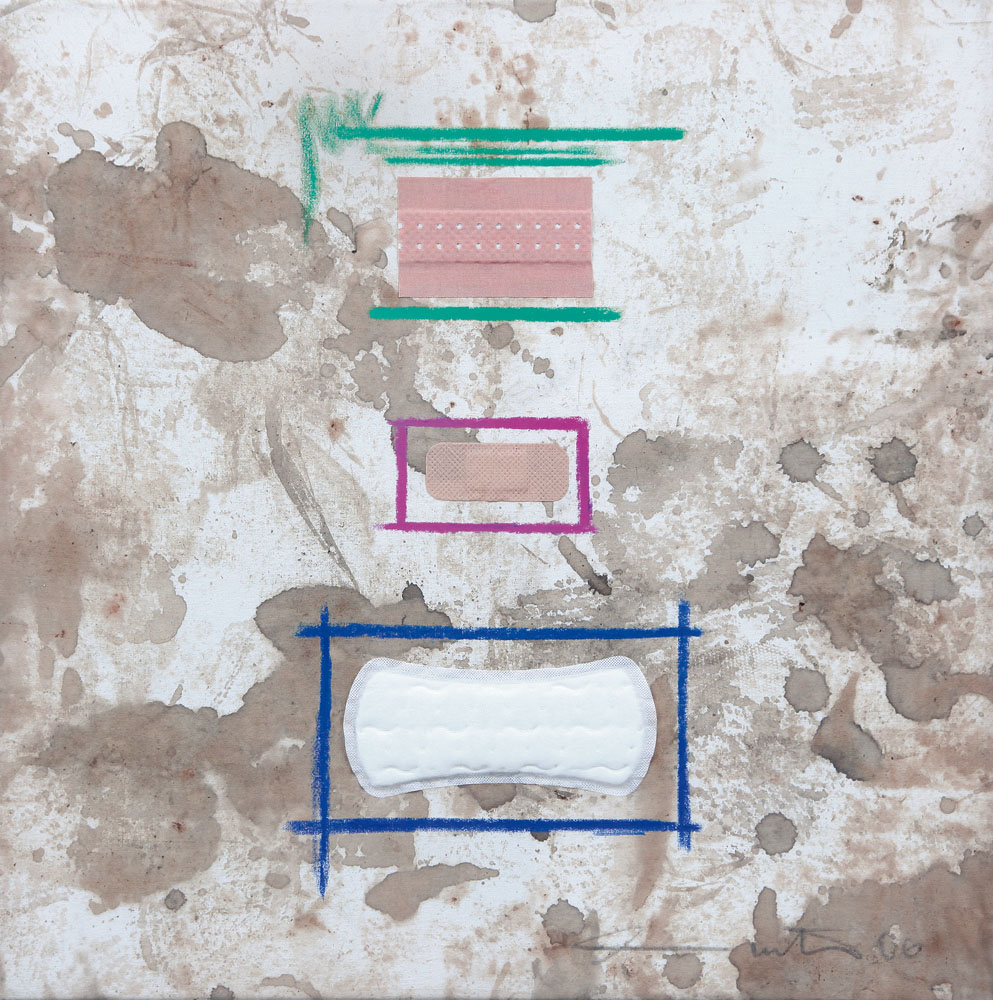 HERMANN NITSCH Vienna 1938 Senza titolo, 2006 sangue, applicazioni e pastelli su tela cm. 50x50, firma e anno in basso a destra, certificato di autenticità della Arteficium Renè Schmitt allegato.