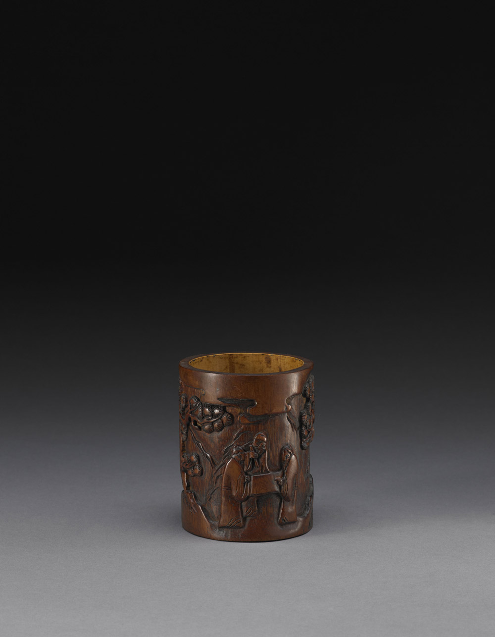 Portapennelli in bambù intagliato con rami di alberi Cina, fine sec. XIX A carved bamboo brushpot, decorated with tree branches China, late 19th century (h cm 11,5)