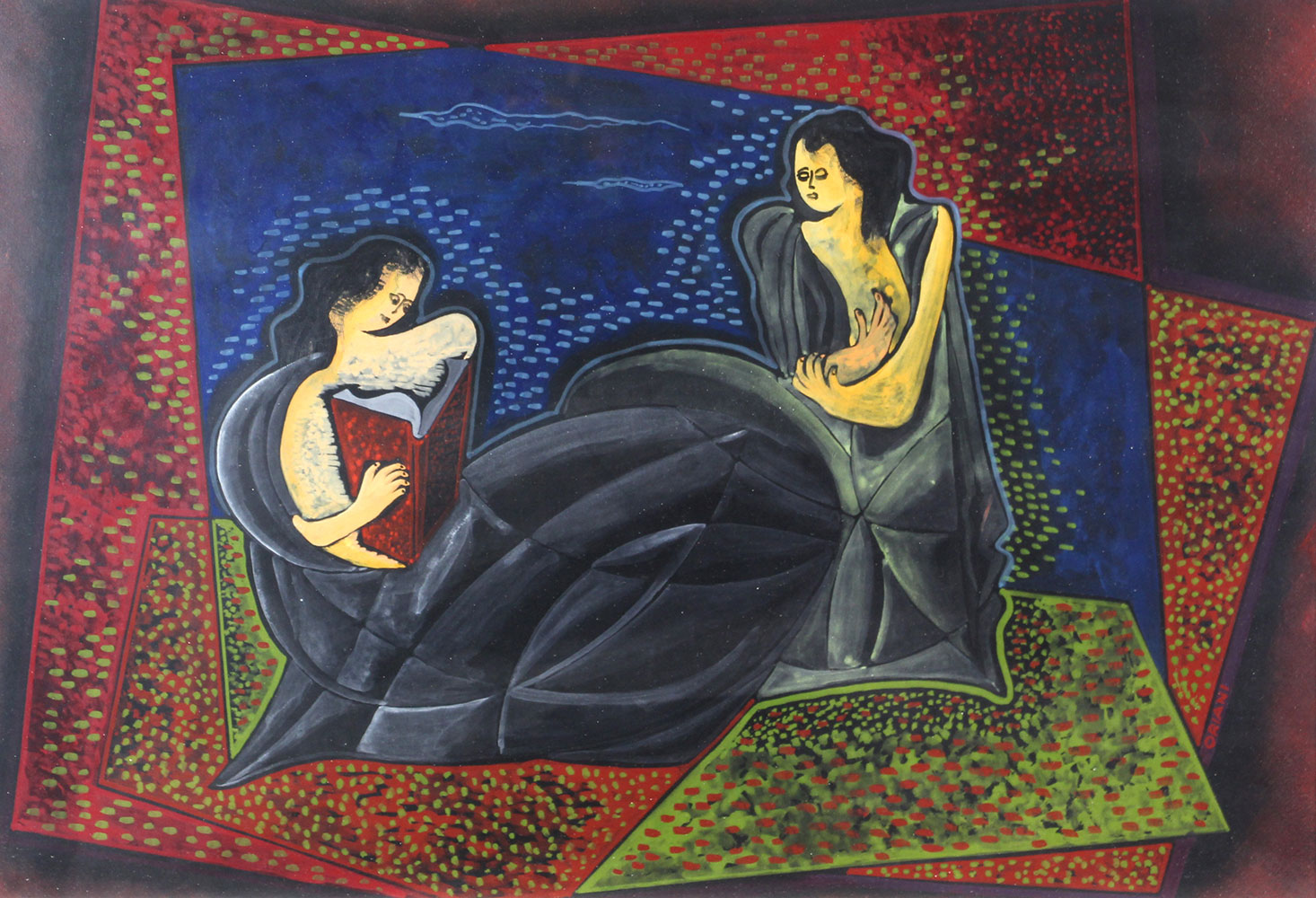 Oriani Pippo La Drôle Couple, 1929/1933 encausto su cartone, cm. 64x44...