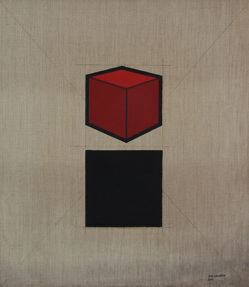 Stefanoni Tino Il Cubo, 1974 olio su tela, cm. 70x60 firmato, datato e...