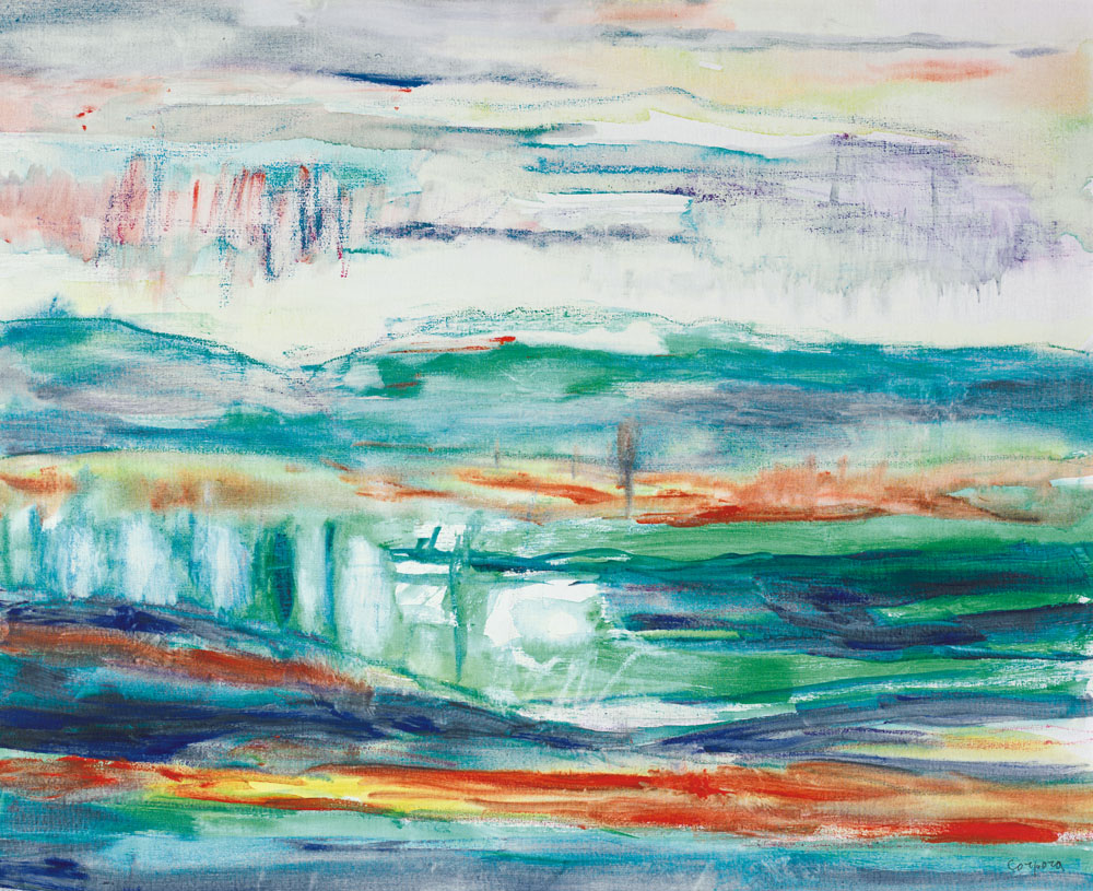 ANTONIO CORPORA Tunisi (Tunisia) 15/08/1909 - Roma 06/09/2004 Viaggio nel nord, 2000 acrilici su tela cm. 81x100, firma in basso a destra, firma, titolo, anno e tecnica al retro, pubblicato su "Corpora, catalogo generale ragionato dei dipinti", volume secondo, a cura di Floriano De Santi, Di Summa - Orler Edizioni, pagina 393 al numero 574.