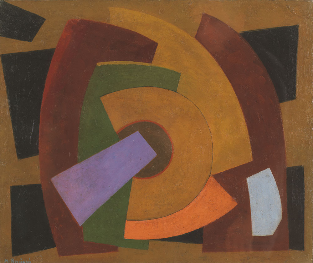 MAURO REGGIANI Nonantola (Mo) 11/08/1897 - Milano 19/05/1980 Composizione, 1943 (1946-47) olio su tela rintelata cm. 55x65, firma in basso a sinistra, etichetta della III Biennale d'Arte di San Paolo (Brasile) 1955 sezione italiana al retro, pubblicato su "Reggiani, catalogo generale delle pitture" a cura di Luciano Caramel, Edizioni Electa (MI), repertorio 1946-47 2, pagina 86.