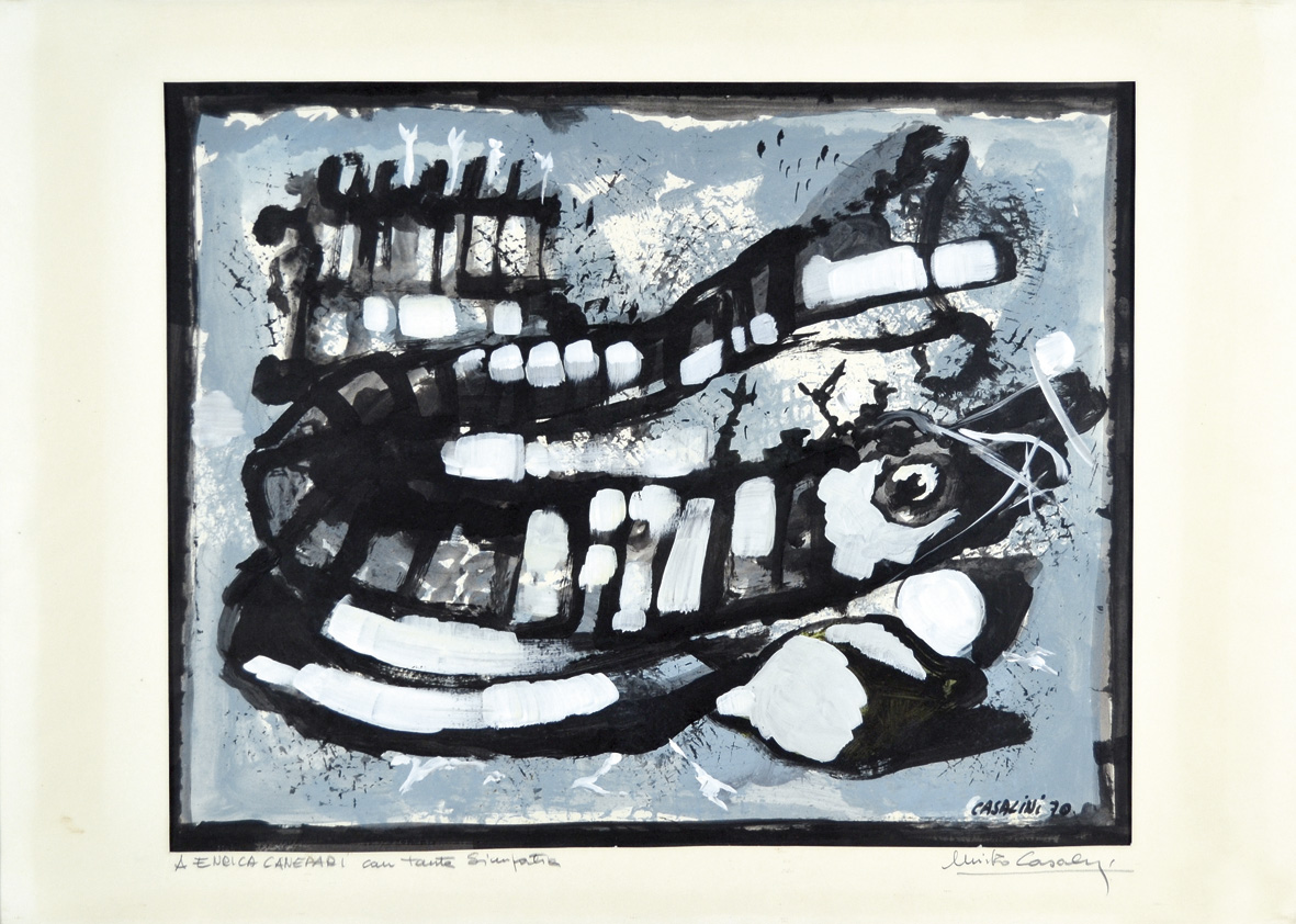 CASALINI MIRCO senza titolo 1970 tecnica mista su carta 40x50 firma data e dedica ad personam in basso