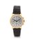 C. n. 9175609 in oro giallo 18 kt con pulsanti ad oliva ed anse fisse. Q. argentato con numeri arabi smaltati, contatore a 30 minuti, scala telemetrica periferica e tachimetrica a chiocciola. M. n. 9387519 a carica manuale. Quadrante, cassa e movimento firmati. Completo di fibbia originale.