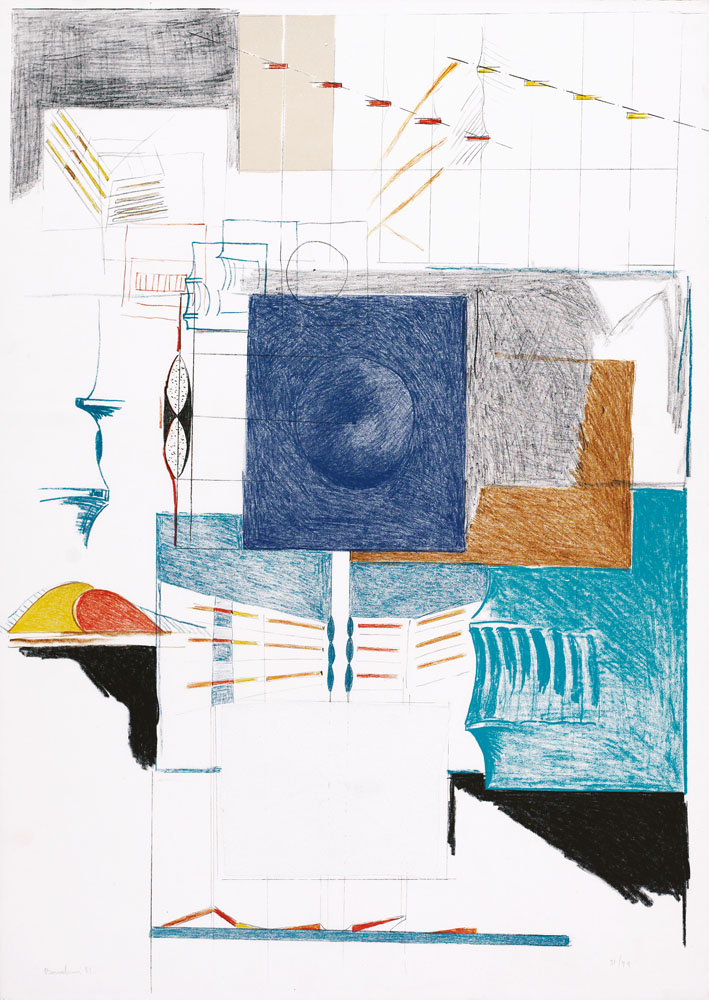 AGOSTINO BONALUMI Vimercate (Mi) 10/07/1935 Progetto, 1981 litografia su carta cm. 80x58, esemplare 51/99, firma e anno in basso a sinistra.