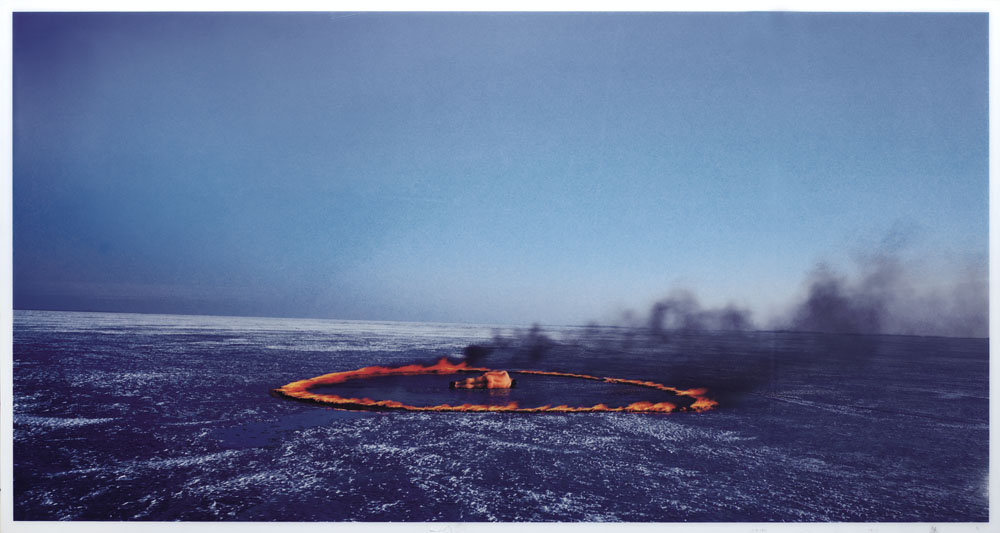 XIN CANG 1967 Betwenn man and nature fire, 2003 stampa lambda a colori sotto plexiglass cm. 126x248, edizione 5/10, firma, titolo, anno e tiratura in basso a destra, etichetta della Marella Gallery (MI) al retro, presenta una sbeccatura al plexiglass in basso al centro.