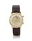 C. n. 744827 in oro giallo 18 kt con doppia corona. Q. bicolore argentato e champagne con indici e numeri arabi applicati, secondi e disco per la sveglia al centro con indicazione di parchimetro. M. n. 1154471 a carica manuale. Quadrante, cassa e movimento firmati. Completo di fibbia originale moderna.