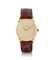 C. n. 1310346 in oro giallo 18 kt con anse curve. Q. argentato con indici applicati e secondi al centro. M. n. 1310386 a carica manuale. Quadrante, cassa e movimento firmati.