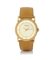C. 18K yellow gold with screwed case back. D. bicolor silvered and champagne with applied indexes and centre seconds. M. self-winding with bumper rotor. Dial, case and movement signed.
