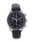 C. stainless steel, round buttons and black bezel with tachymetre scale. D. black with luminous indexes and hands, 30 minute and 12 hour registers. M. self-winding. Dial, case and movement signed. Accompanied by Omega strap, stainless steel buckle, box and certificate.