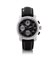 C. n. 3714897 in acciaio con fondello e corona a vite, pulsanti rettangolari, vetro zaffiro. Q. bicolore nero e argentato con numeri arabi smaltati, 2 e 8 in blu, indici e lancette luminescenti, contatore a 30 minuti e 12 ore, data al 3. M. a carica automatica. Quadrante, cassa e movimento firmati.