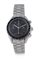 C. in acciaio con pulsanti tondi e lunetta nera con scala tachimetrica. Q. nero con indici e lancette luminescenti, contatore a 30 minuti e 12 ore. M. a carica automatica. Bracciale in acciaio. Quadrante, cassa, movimento e bracciale firmati.