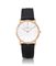C. n. 583238 extra-piatta in oro rosa 18 kt con vetro zaffiro. Q. bianco con indici smaltati. M. n. 745085 extra-piatto a carica manuale. Quadrante, cassa e movimento firmati. Completo di cinturino, fibbia in oro rosa 18 kt, astuccio e certificato del 10/1988.