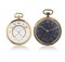 1. C. openface, engraved 18K yellow gold. D. silvered with applied Breguet numerals and subsidiary seconds. M. rhodium finished, anchor escapement, keyless dress. 2. golden metal with engraved band. D. black with applied indexes and subsidiary seconds (reprinted). M. rhodium finished, anchor escapement, keyless dress. Dials, cases and movements signed.