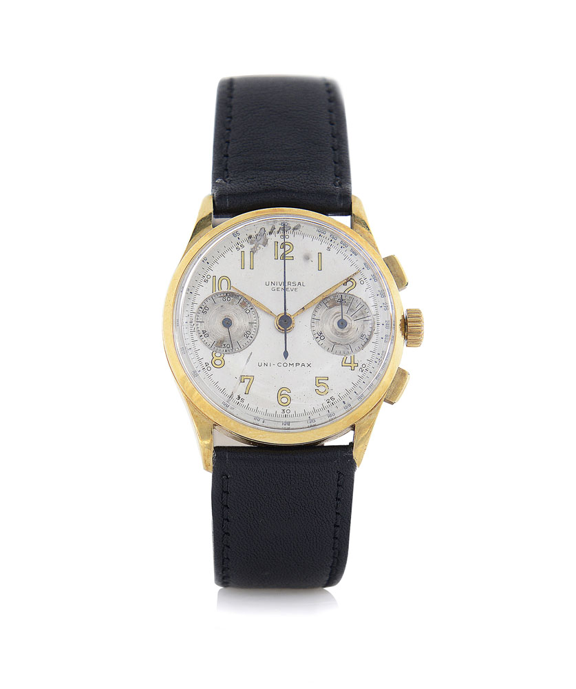 UNIVERSALUNIVERSAL CRONOGRAFO ANNI '50. C. in oro giallo 18 kt con pulsanti...