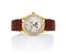 C. n. 315313 in oro giallo 18 kt con pronunciate anse a ragno scanalate. Q. argentato a due toni con indici e numeri arabi applicati, finestrelle per giorno e mese al 12, secondi e fasi luna al 6, data periferica. M. n. 463431 a carica manuale con regolazione micrometrica. Quadrante, cassa e movimento firmati. Completo di fibbia in oro giallo originale.