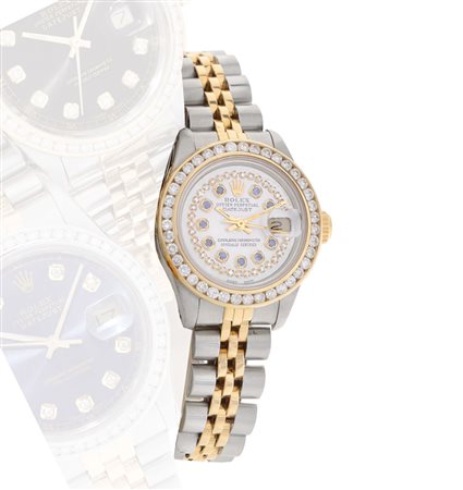 C. n. R508154 in acciaio e oro giallo con fondello e corona a vite, lunetta in brillanti e vetro zaffiro. Q. argentato con indici in zaffiri, divisione in 60 secondi/minuti in brillanti, secondi al centro e data al 3. M. a carica automatica. Bracciale Jubilè in acciaio e oro giallo 18 kt. Quadrante, cassa, movimento e bracciale firmati.