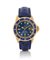 C. n. 2191064 in oro giallo 18 kt con fondello e corona a vite, lunetta blu graduata e girevole. Q. blu con indici applicati, lancette luminescenti, secondi al centro e data al 3. M. a carica automatica. Quadrante, cassa e movimento firmati. Completo di fibbia in oro giallo 18 kt originale.