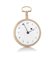 C. in oro rosa 18 kt con profili decorati. Q. in smalto con numeri arabi. M. in ottone dorato con scappamento a verga, suoneria su campanello a richiamo delle ore e dei quarti, carica a chiavetta.