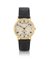C. in oro giallo 18 kt con carrura cannelé e vetro zaffiro. Q. particolare in oro argentato inciso guillochè con numeri romani rotanti entro cartiglio liscio. M. a carica manuale. Quadrante, cassa e movimento firmati. Completo di fibbia in oro giallo 18 kt originale.