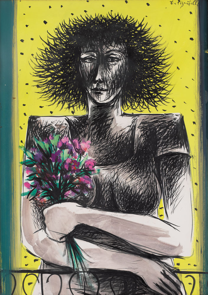 ERCOLE PIGNATELLI Lecce 28/04/1935 Figura tecnica mista su carta cm. 70x50, firma in alto a destra.