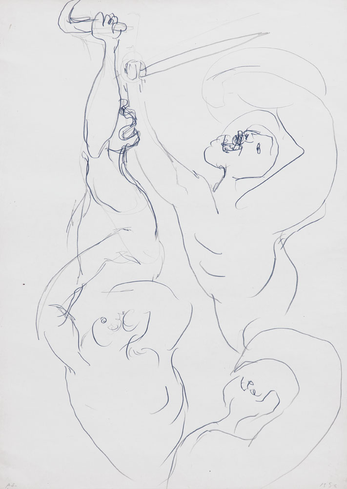 ARTURO CARMASSI Lucca 02/07/1925 Il massacro, 1956 matita su carta cm. 69x49,...
