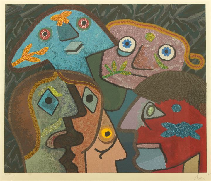 BAJ ENRICO Milano 1924 – 2003 Vergiate "Personaggi" 70x100 foglio, 61x71...