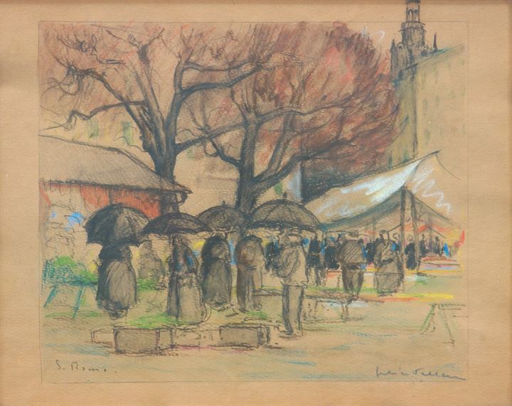 VELLAN FELICE Torino 1889 - 1976 "Giornata di pioggia a Sanremo" 30x38...