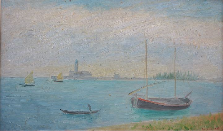 LILLONI UMBERTO Milano 1898 - 1980 "Laguna veneta" 1948 40x65 olio su tela...
