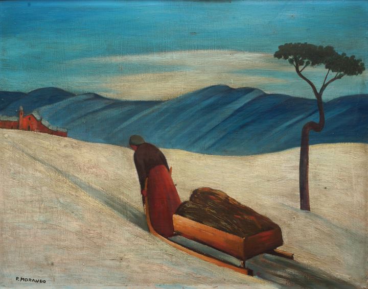 MORANDO PIETRO Alessandria 1892 - 1980 "La slitta" 1933 60x75 olio su tavola...