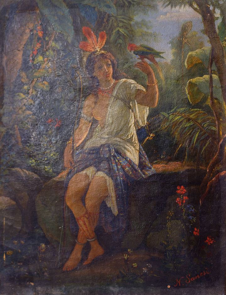 SANESI NICOLA Firenze 1818 – 1889 "Figura mitologica con pappagallo"...