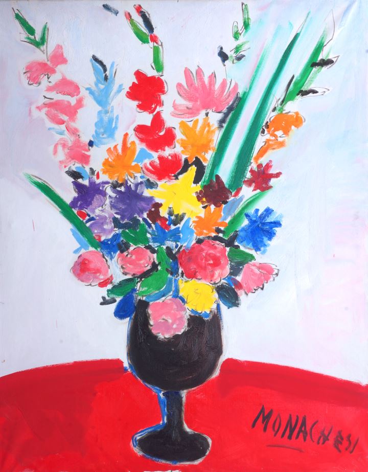 MONACHESI SANTE Macerata 1910 - 1991 Roma "Fiori" 101x80 olio su tela Opera...