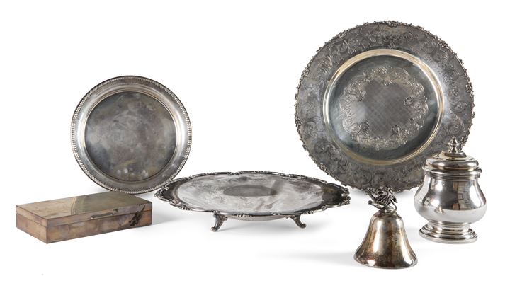 LOTTO DI SEI OGGETTI IN ARGENTO